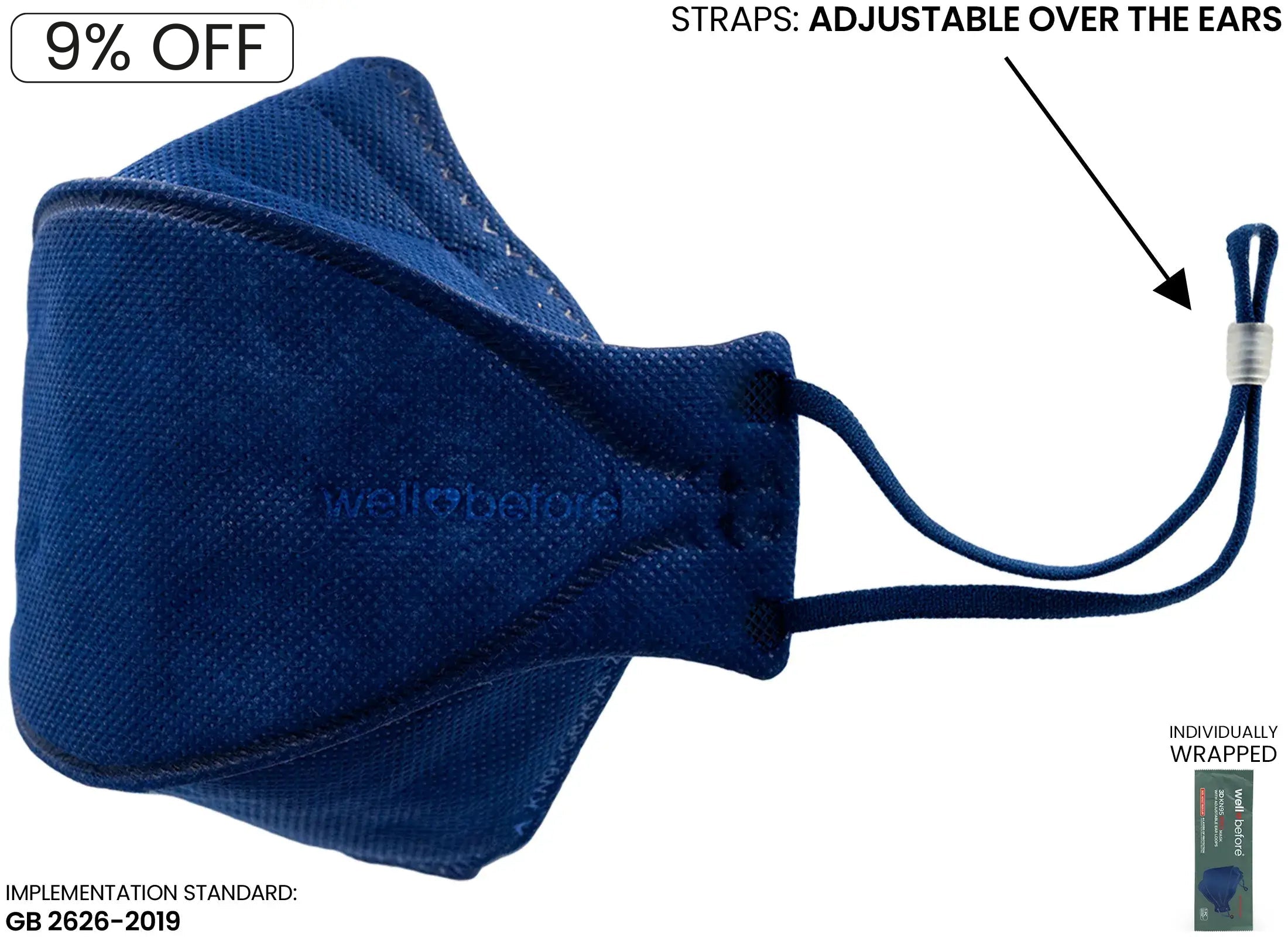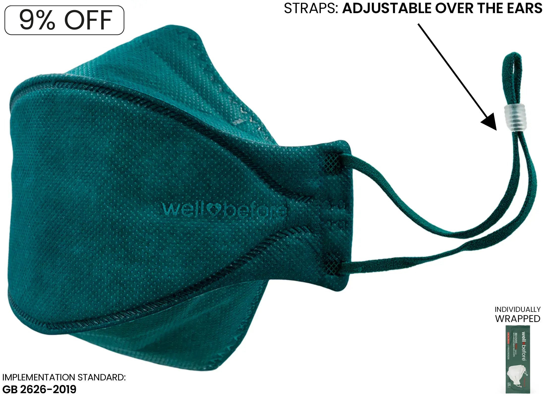 With this in mind, WellBefore has taken the well-known 3D KN95 masks and made some adjustments to the design to create a brand new premium, comfortable, breathable, and protective mask for everyone to enjoy and benefit from. Taking the importance of a protective fit that leaves no room for air entry into consideration, this new design includes an aluminum nose pin and nose foam for the secure sealing of the mask to the face. These additions are the main differences between this new improved design and our best-selling 3D KN95 mask. It beats a regular cloth mask that may not offer much protection, as it includes adjustable ear loops/straps over head as well, providing you with the ability to alter the mask until it perfectly forms on your face as protectively as possible.