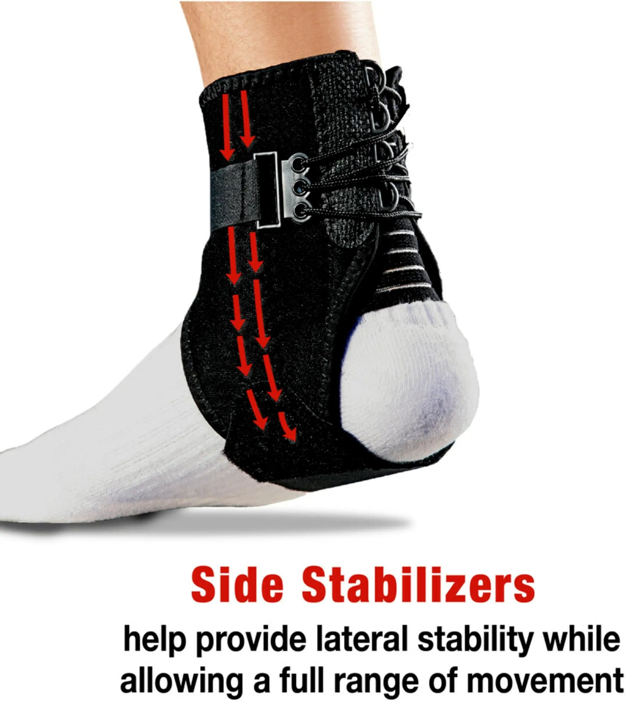 Crafted with precision, this ankle brace integrates innovative features to deliver a personalized and effective support solution. The reinforced side stabilizers are strategically placed to help limit unwanted lateral movement, safeguarding your ankle from potential twists and strains. Its thoughtful design ensures both protection and freedom of movement, allowing you to move with greater ease and security.