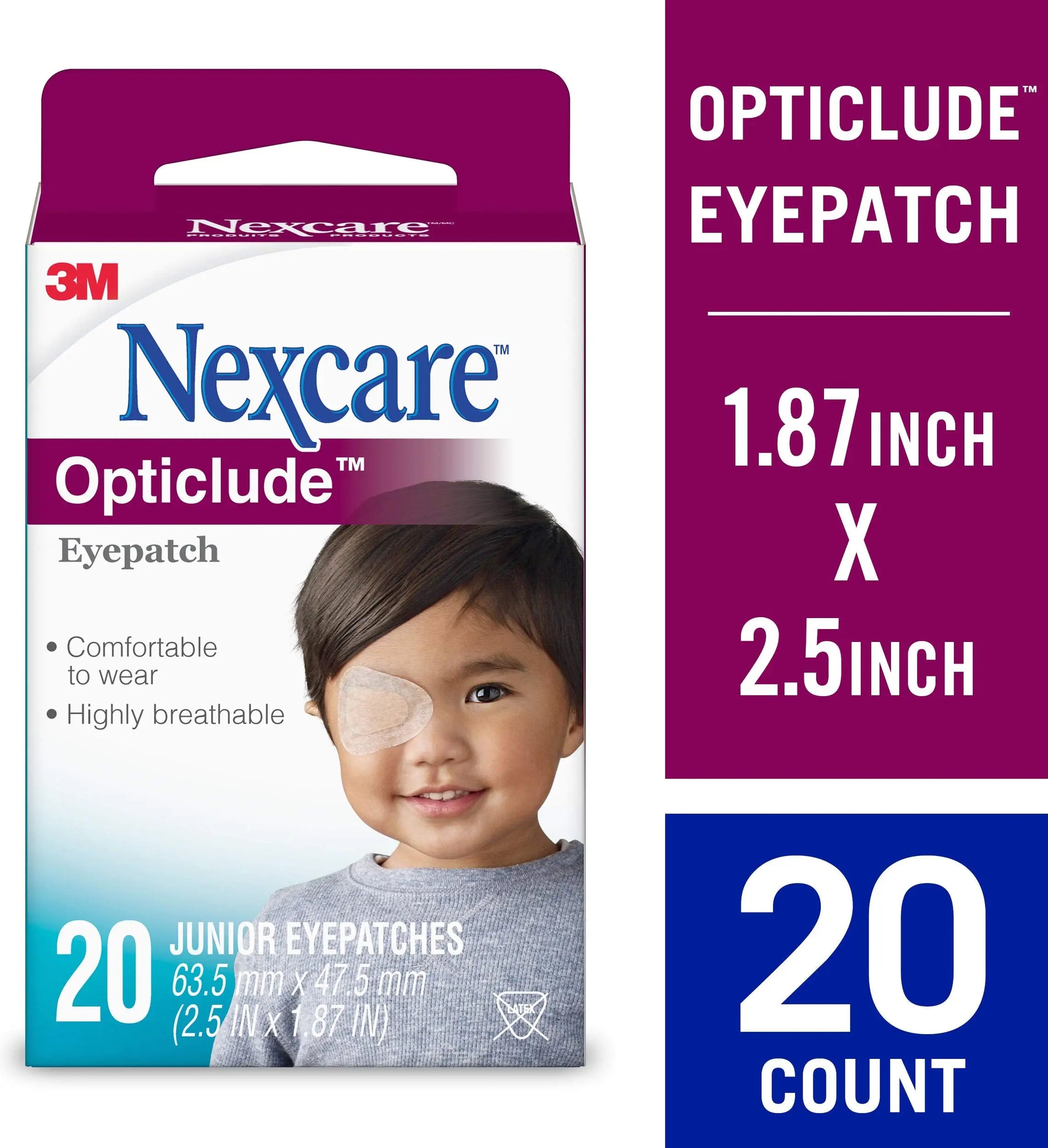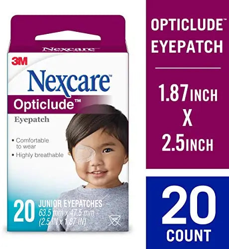Each box contains 20 premium eye patches designed for effective vision therapy treatment. The 3M Nexcare Opticlude Eye Patch is specifically engineered to support the treatment of amblyopia (lazy eye) and strabismus (crossed eyes) as part of your doctor-recommended treatment plan.