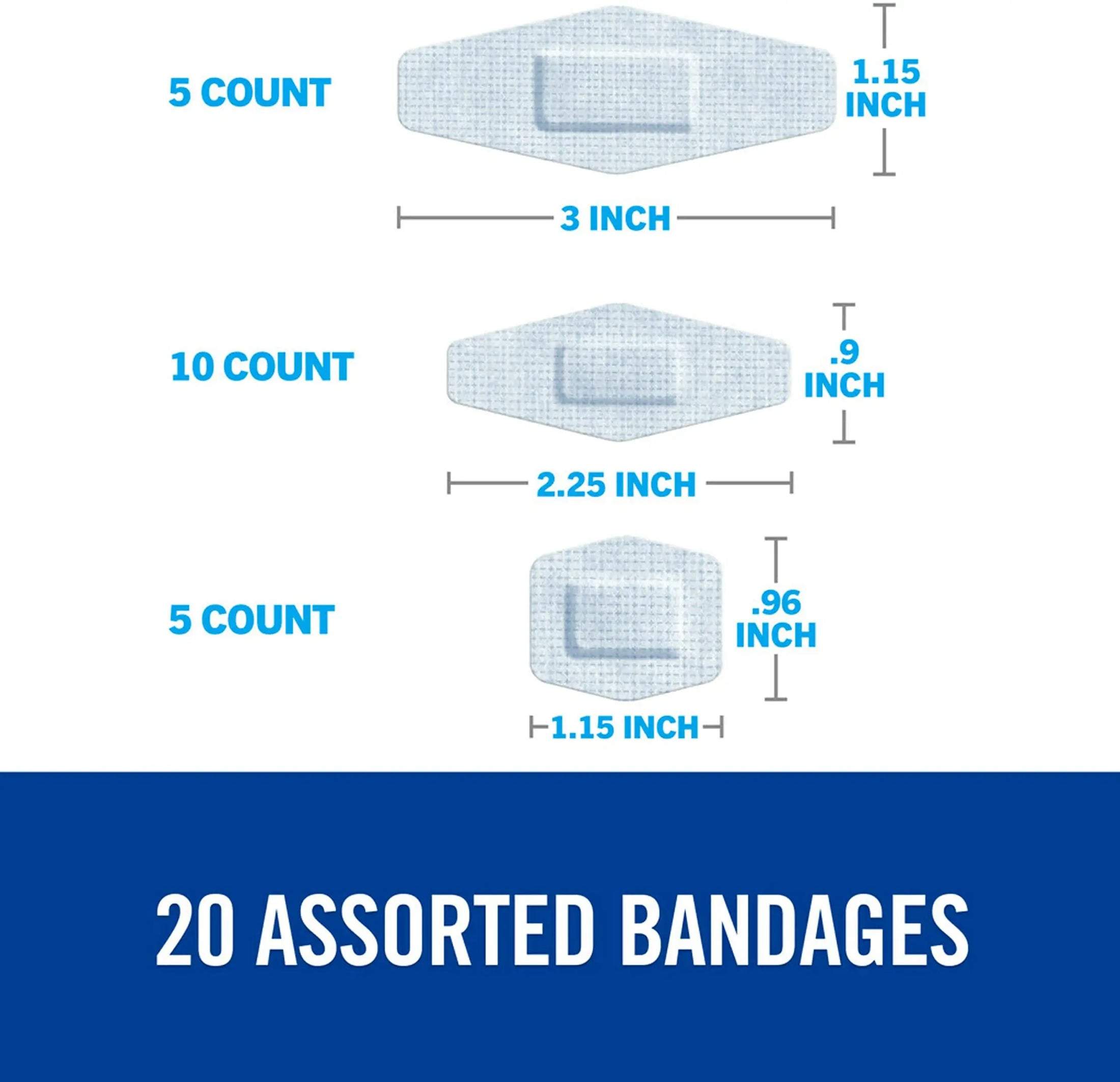 This convenient box contains 20 assorted bandages specifically designed for those with sensitive skin. Experience comfort and protection without irritation.