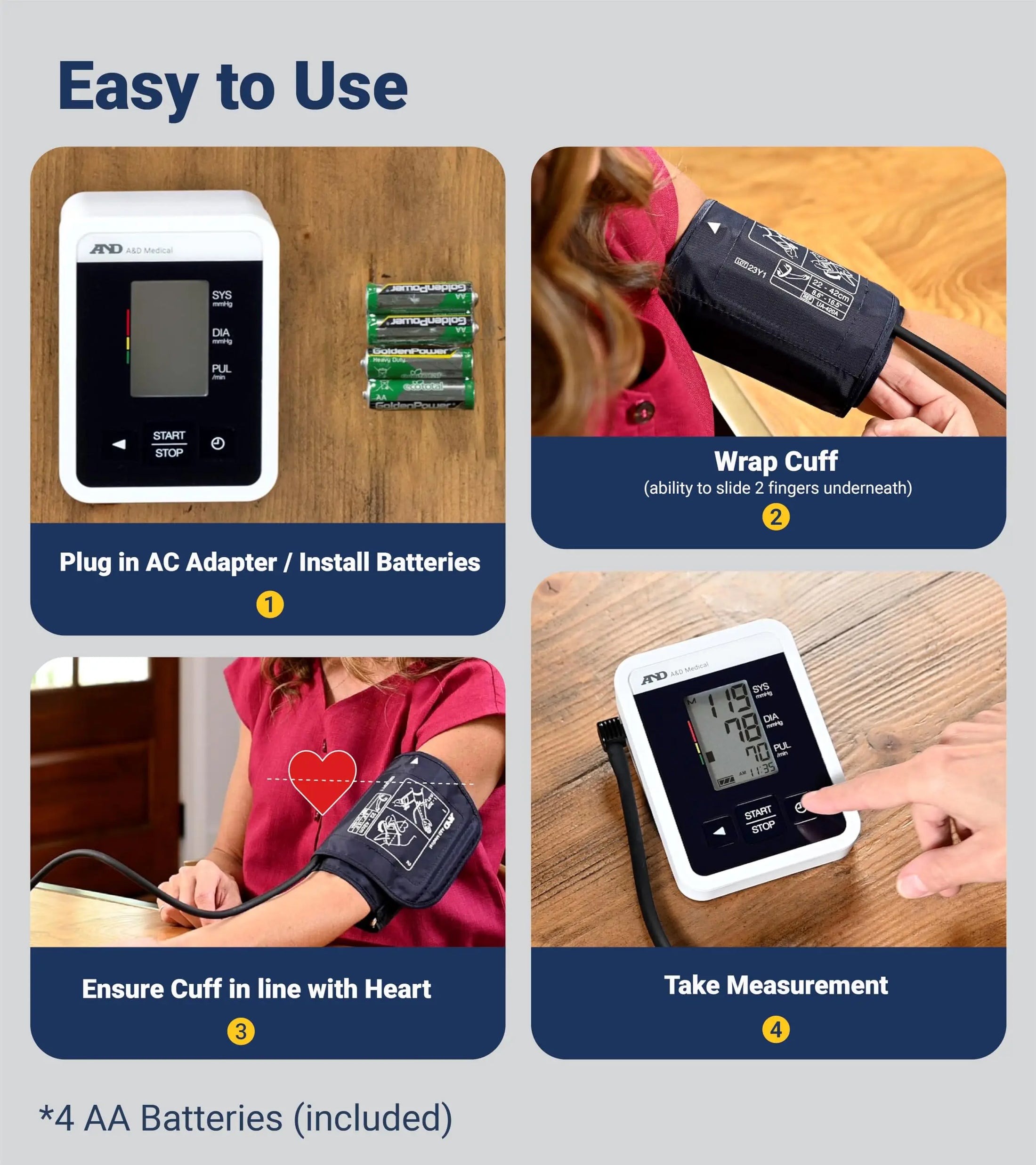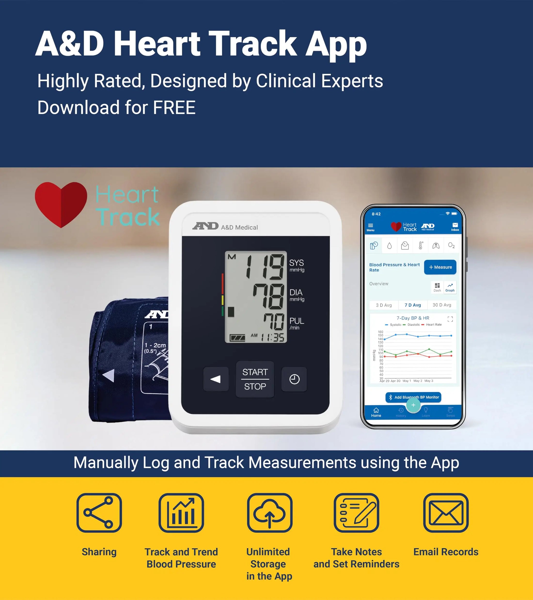 - Compatible with A&D Heart Track App for unlimited storage