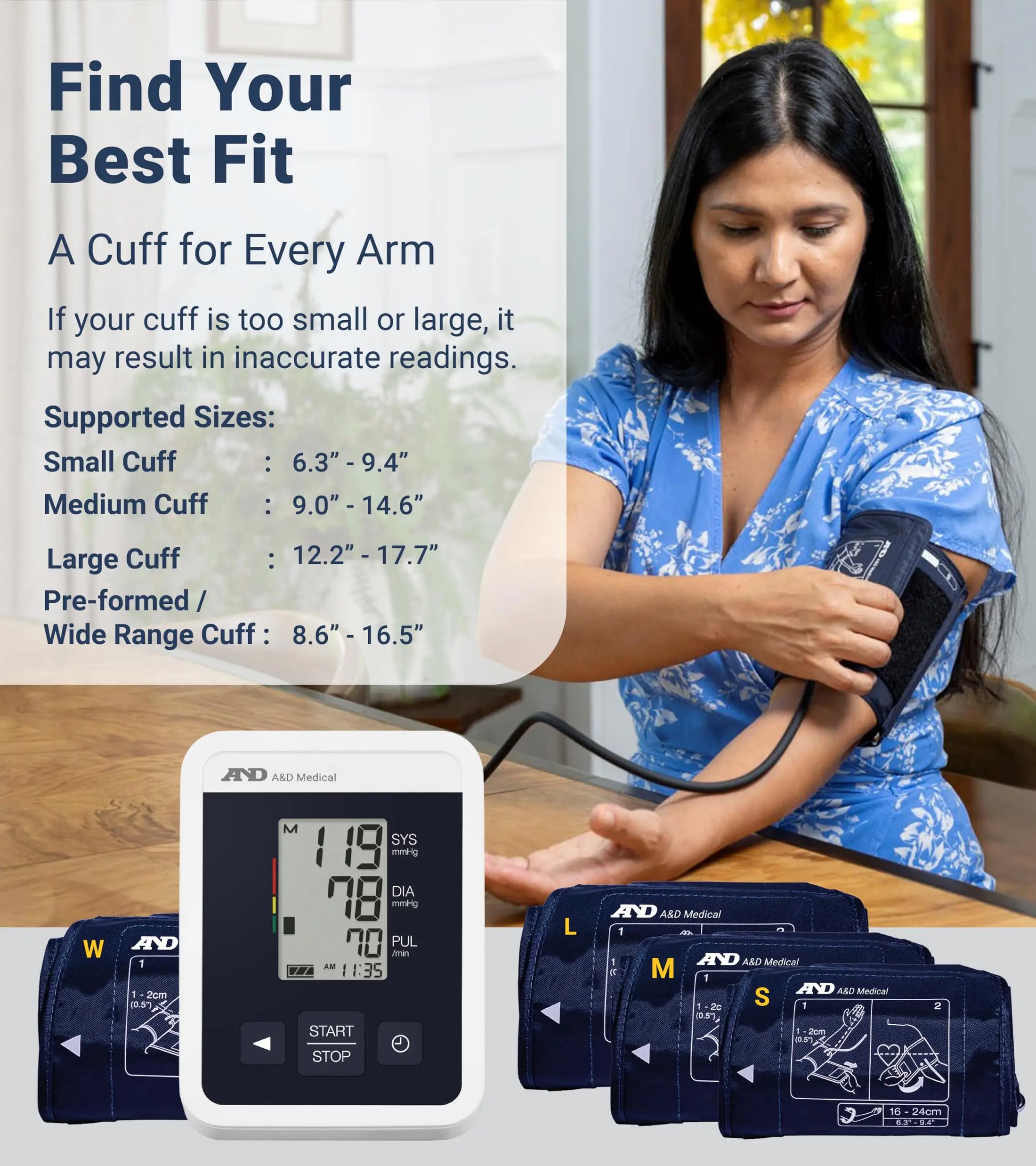 A&D Medical One Touch Blood Pressure Monitor with Wide Range Cuff
