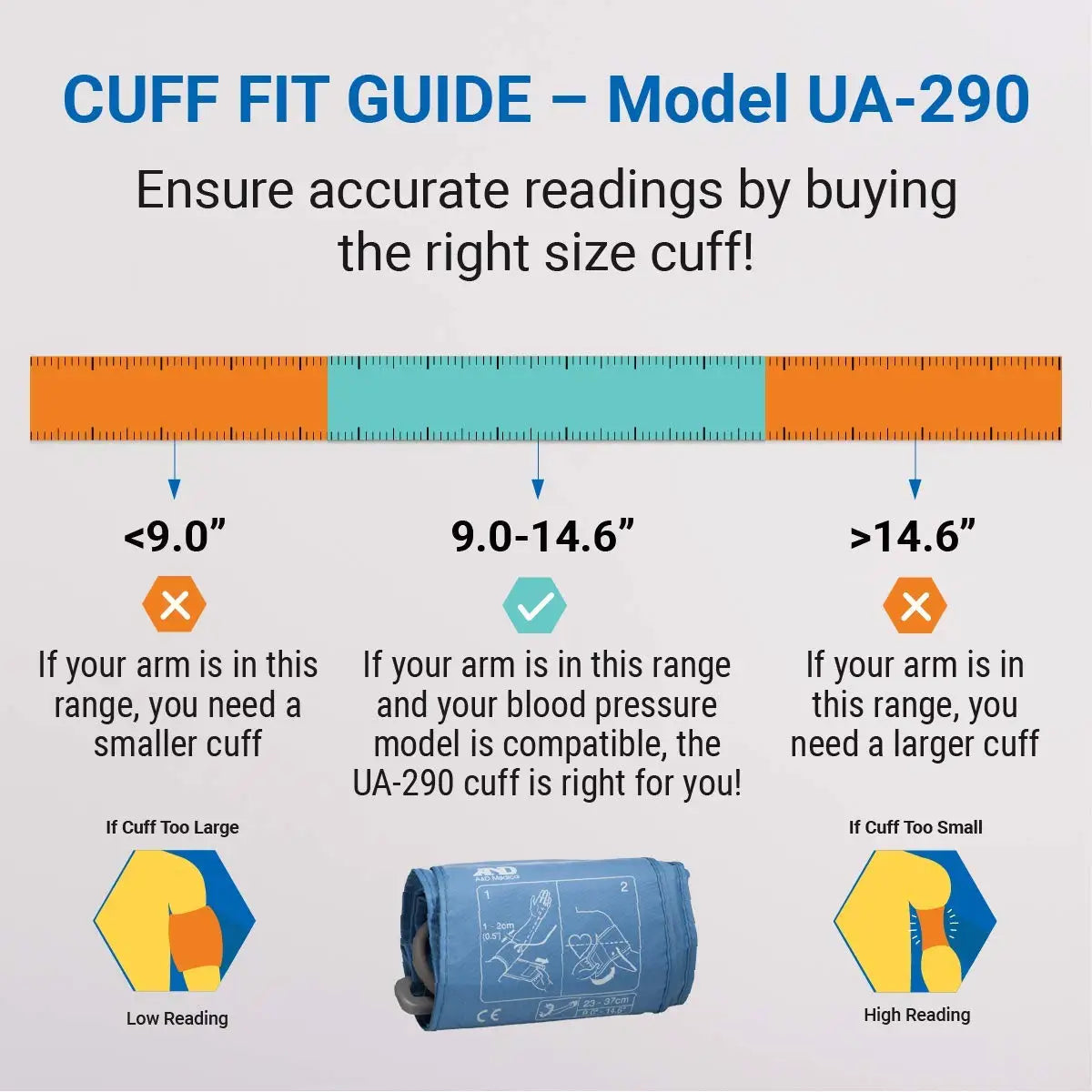 - Medium: Fits upper arms 9.0 - 14.6 inches (23.0 - 37.5 cm)