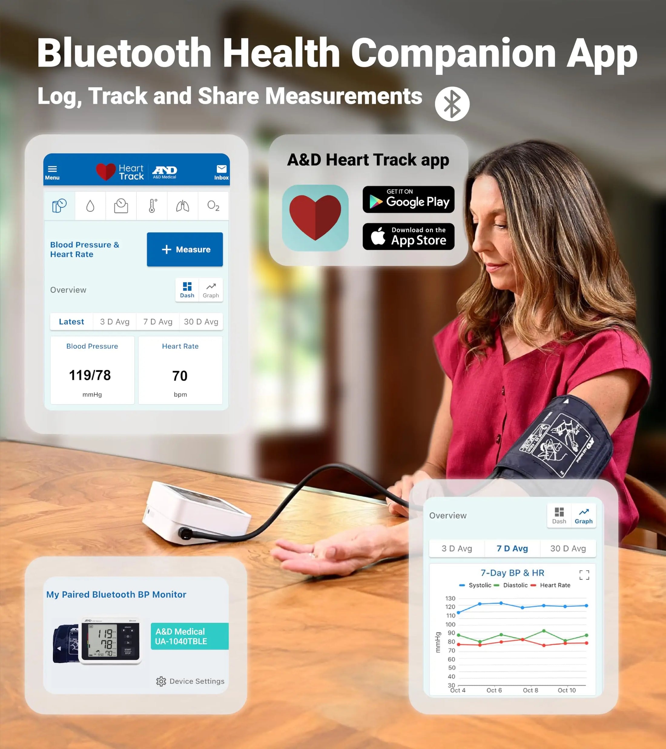 Store up to 90 readings directly on the device with its large LCD display featuring oversized numbers for easy readability. For unlimited storage, seamlessly sync with the free A&D Heart Track App available for iOS and Android devices.