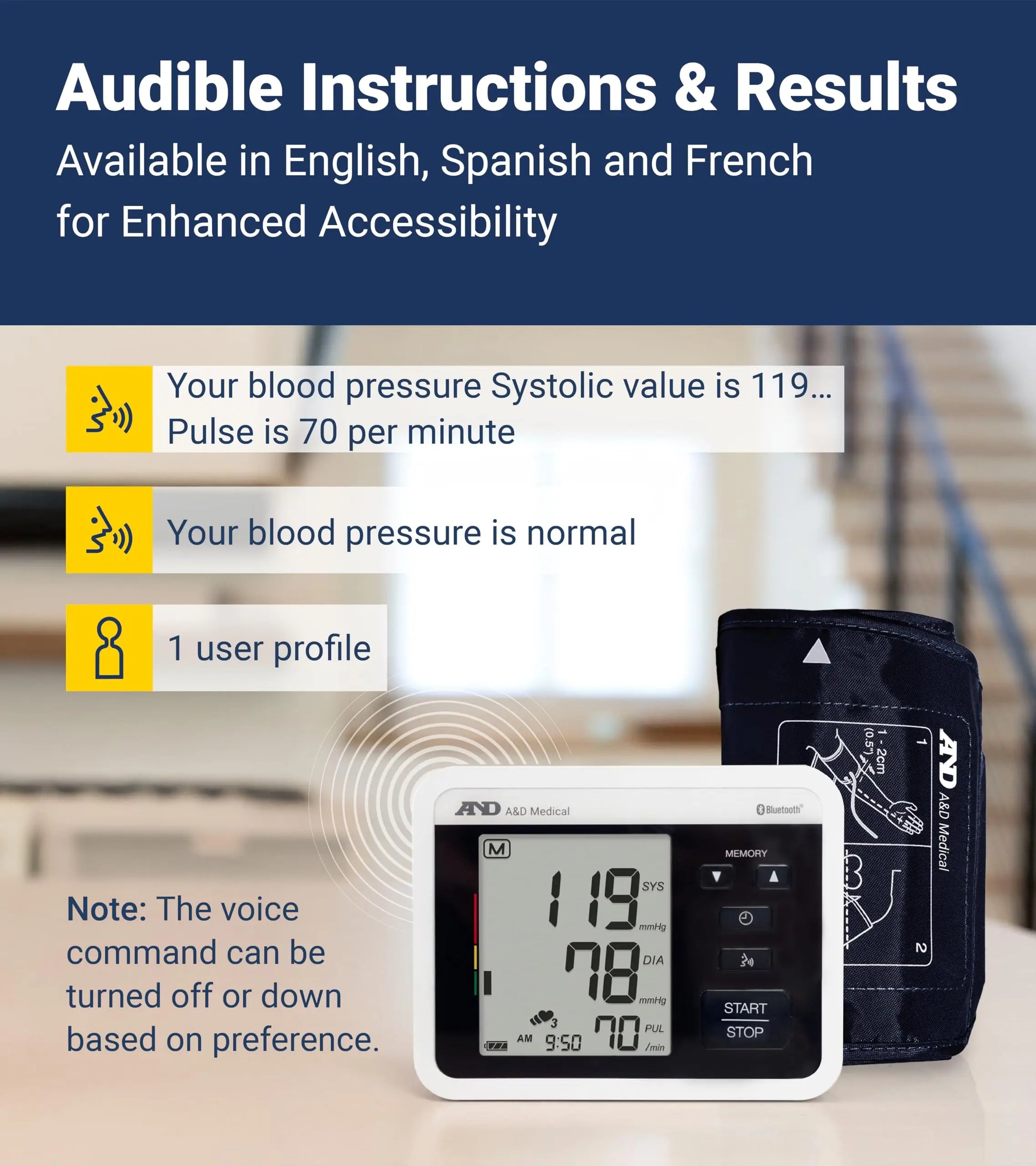 Designed with inclusivity in mind, this monitor features advanced voice guidance available in English, Spanish, and French. Clear verbal instructions and audible results make it ideal for users with visual impairments or anyone who prefers hands-free operation.