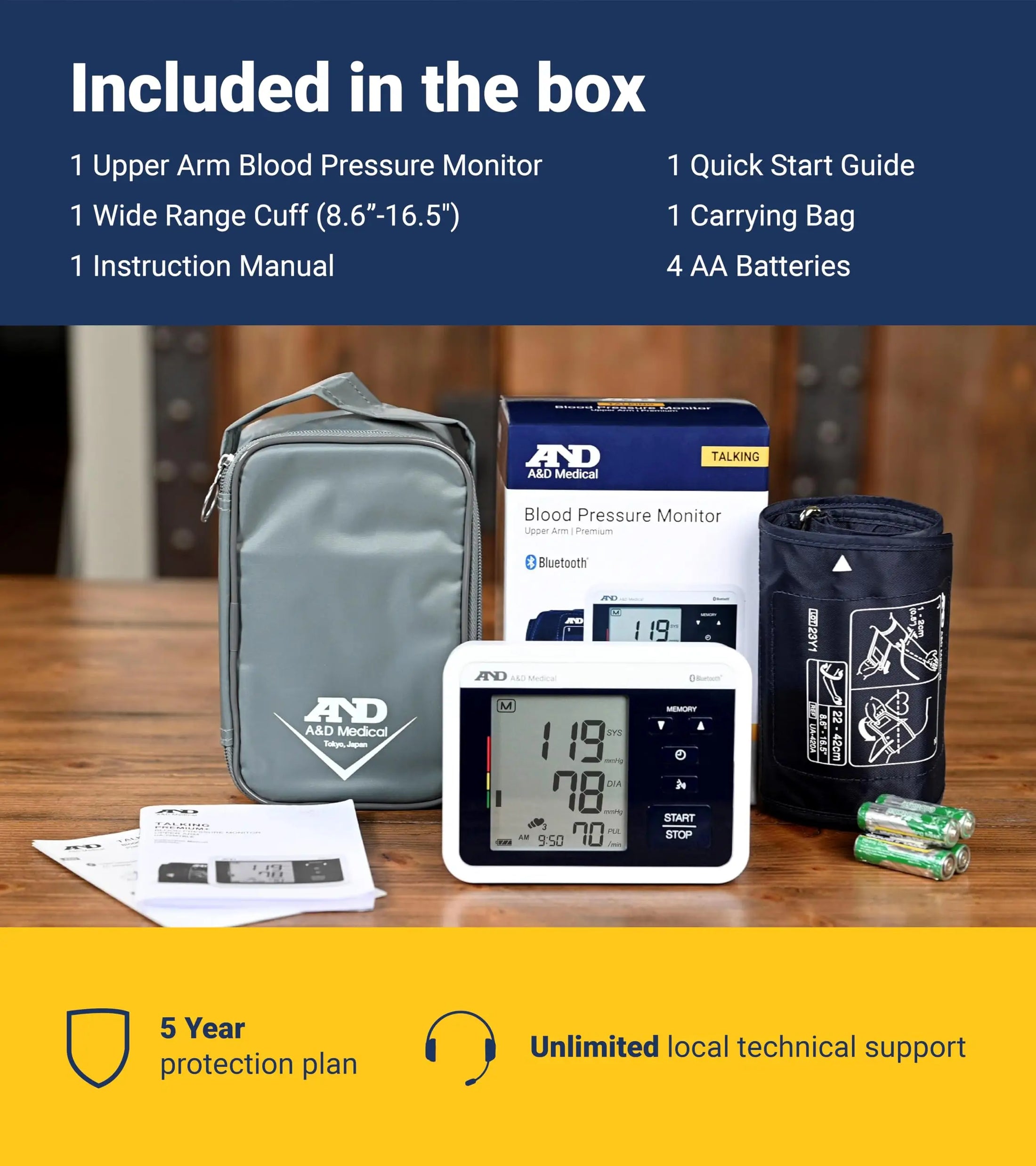 A&D Medical Voice-Guided Bluetooth Blood Pressure Monitor