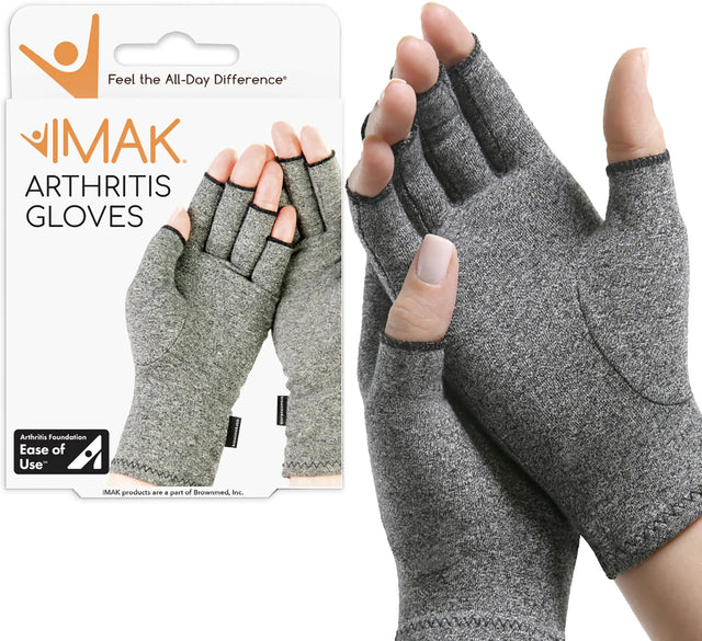 Experience comfortable, all-day relief with Brownmed IMAK Compression Arthritis Gloves. This convenient pack of 2 gloves provides gentle compression therapy designed to alleviate discomfort from arthritis, joint pain, and stiffness while promoting better circulation.