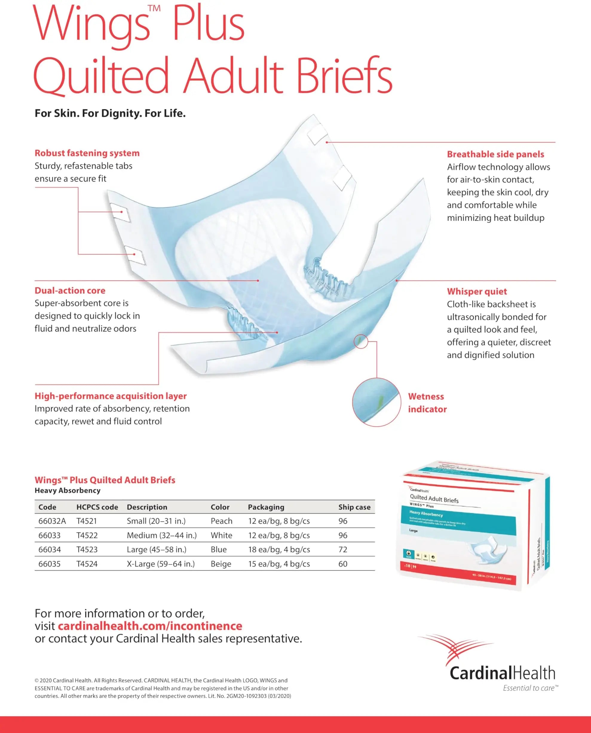 Experience exceptional comfort and reliable protection with Cardinal Health Quilted Adult Briefs Wings Plus. These premium disposable briefs are designed to provide maximum absorbency while maintaining the dignity and comfort of the wearer. Available in multiple size options to ensure the perfect fit for every individual.