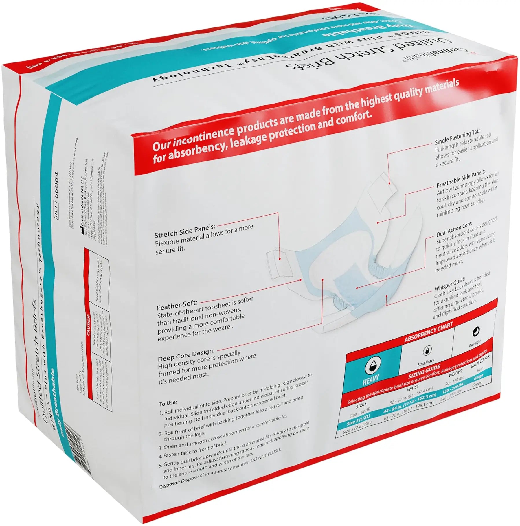 The innovative BreatheEasy technology in these quilted stretch briefs helps maintain skin health by allowing air circulation while providing maximum protection. Whether for daily use or overnight protection, these briefs deliver the confidence and comfort needed for active lifestyles.