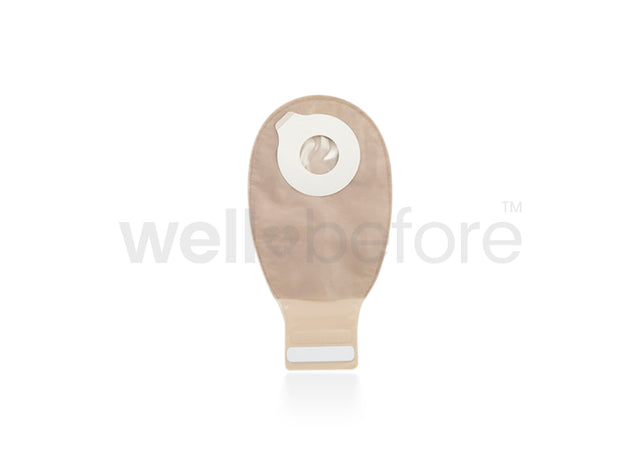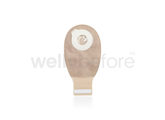- Instead of plastic rings, a foam adhesive securely couples the pouch to the skin barrier's clear plastic "Landing Zone"