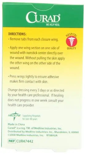 Experience hospital-quality wound care at home with these Curad Butterfly Closure Adhesive Bandages. This pack contains 12 individually wrapped, sterile bandages, meticulously designed to effectively close and secure small wounds and incisions. Perfect for minor cuts, lacerations, or post-surgical care, these bandages provide reliable support to aid the natural healing process.