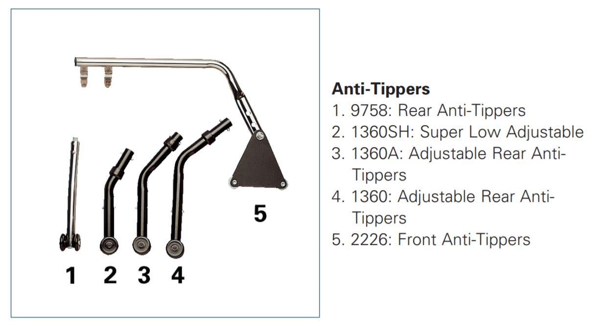 This essential safety accessory is sold individually and provides reliable protection against tipping for your Invacare Tracer SX5 wheelchair. The adjustable length anti-tipper ensures optimal stability and peace of mind during daily use.