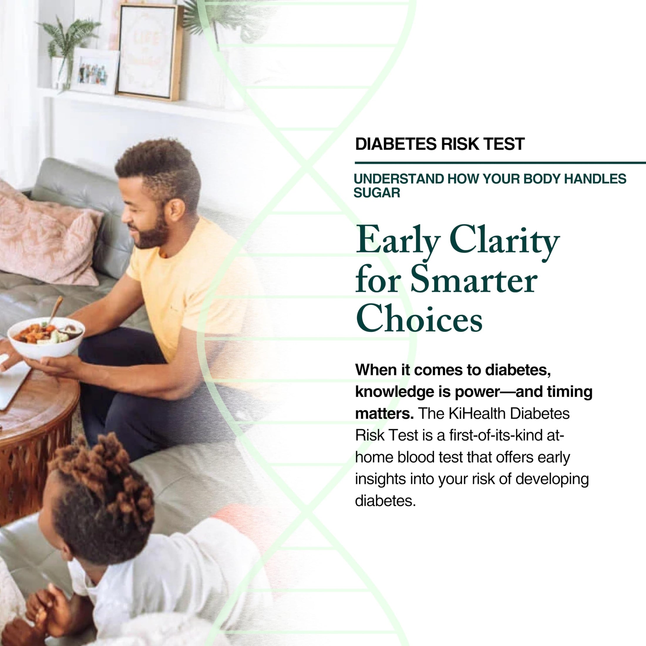 When it comes to diabetes, knowledge is power—and timing matters. The KiHealth Diabetes Risk Test is a first-of-its-kind at-home test that offers early insights into your risk of developing diabetes. Developed using research from Yale University, this panel combines innovative and established biomarkers to evaluate beta cell function, which plays a key role in insulin production and blood sugar regulation.