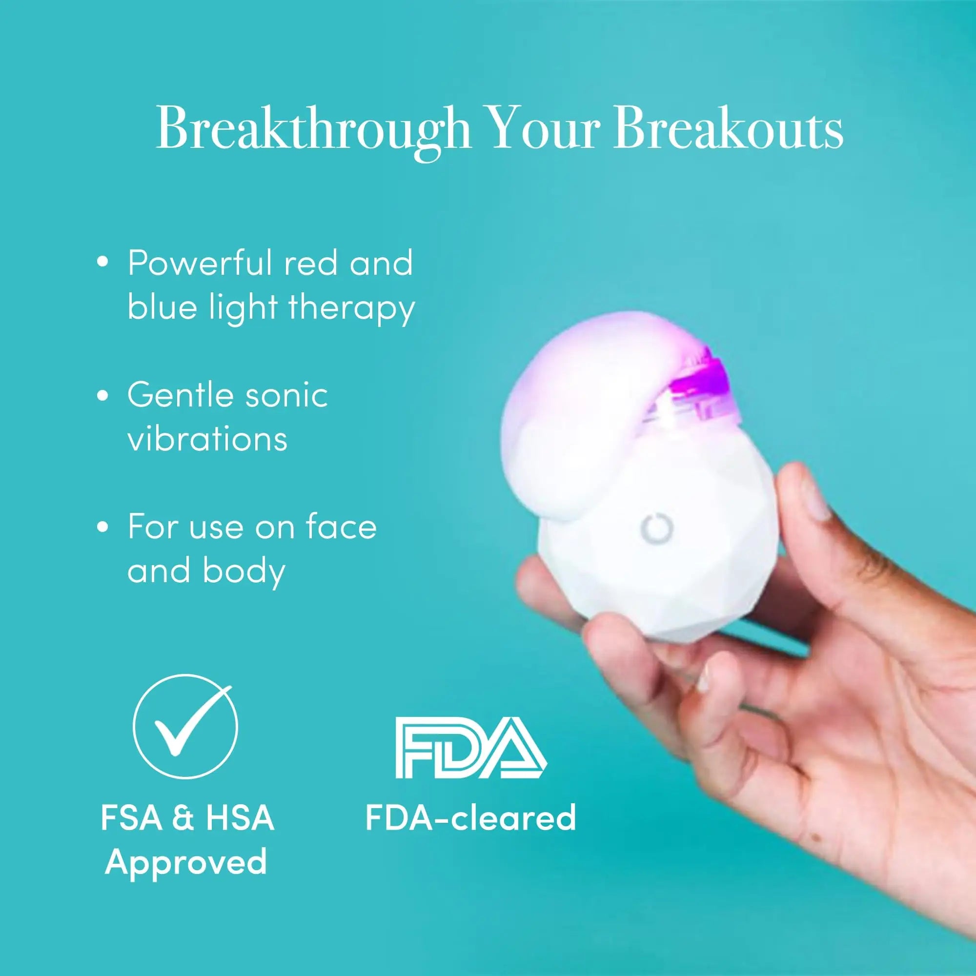 Experience the power of two specialized light therapies working together. The blue light therapy targets acne-causing bacteria to help reduce flare-ups and potential scarring, while the red light therapy soothes inflammation and reduces pore size for calmer, clearer skin.