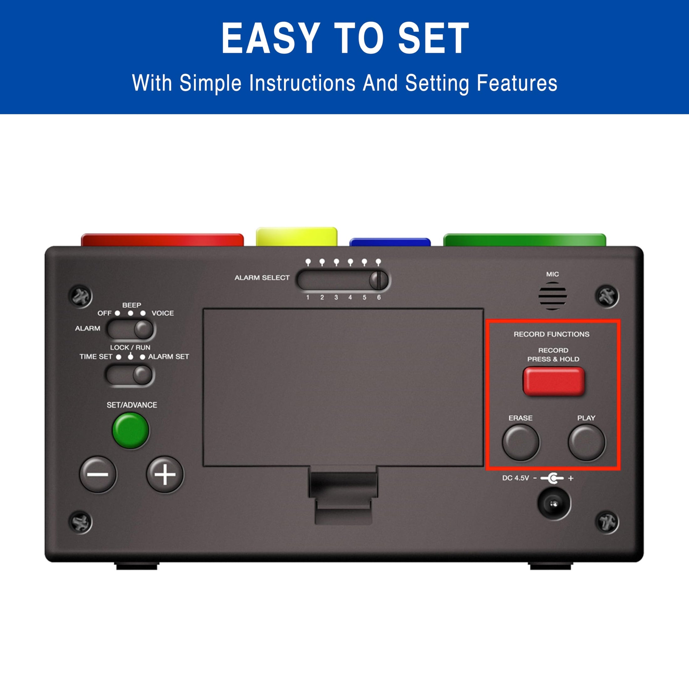 This personal recording alarm clock is designed to help you stay organized and remember important daily tasks. Each unit features advanced recording capabilities that make it perfect for medication reminders, daily routines, and important appointments.