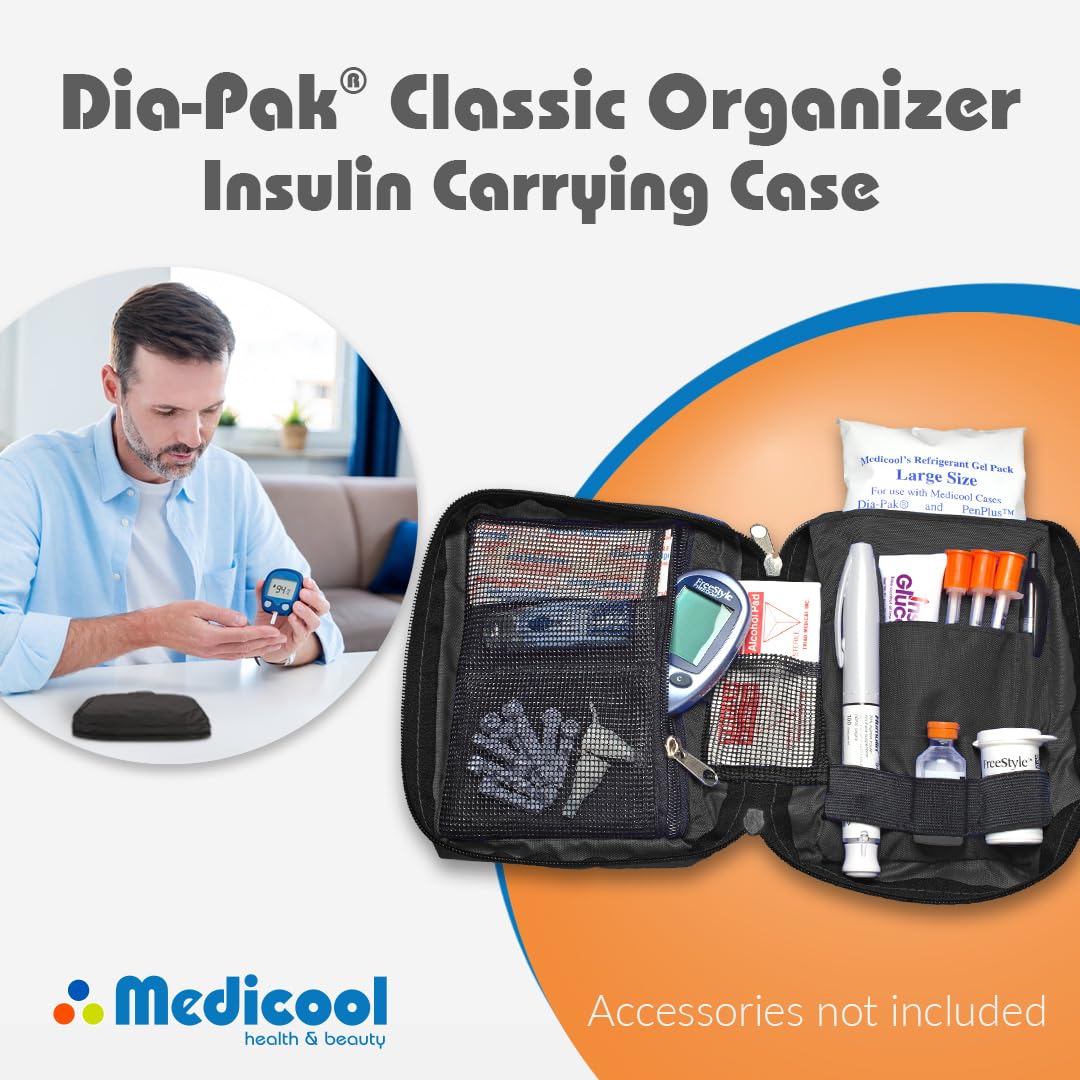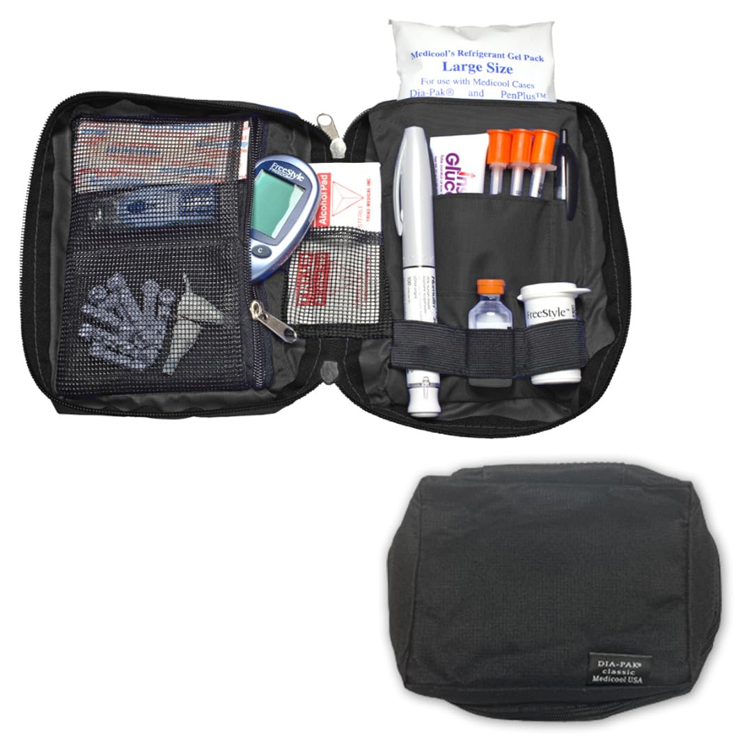 This single unit diabetic organizer has been the trusted choice since 1989 for keeping your insulin and related supplies organized and portable. Constructed of durable nylon, the Dia-Pak Classic efficiently organizes up to a 1-week supply of all your required diabetic supplies in a variety of pockets and storage compartments.