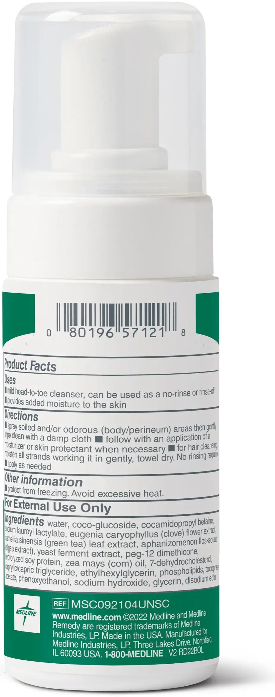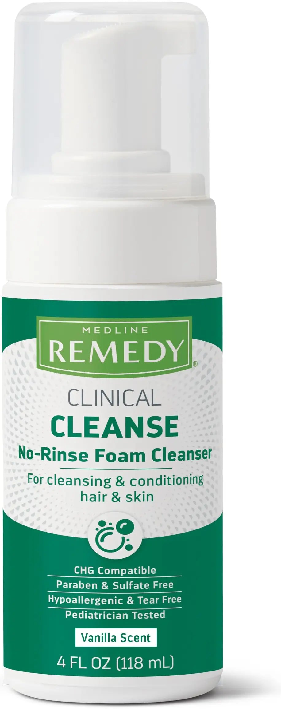 Experience the convenience of premium no-rinse cleansing with Medline's Clinical Foam Cleanser. This 4 oz formula provides gentle yet effective cleansing for face, body, and hair without the need for running water.