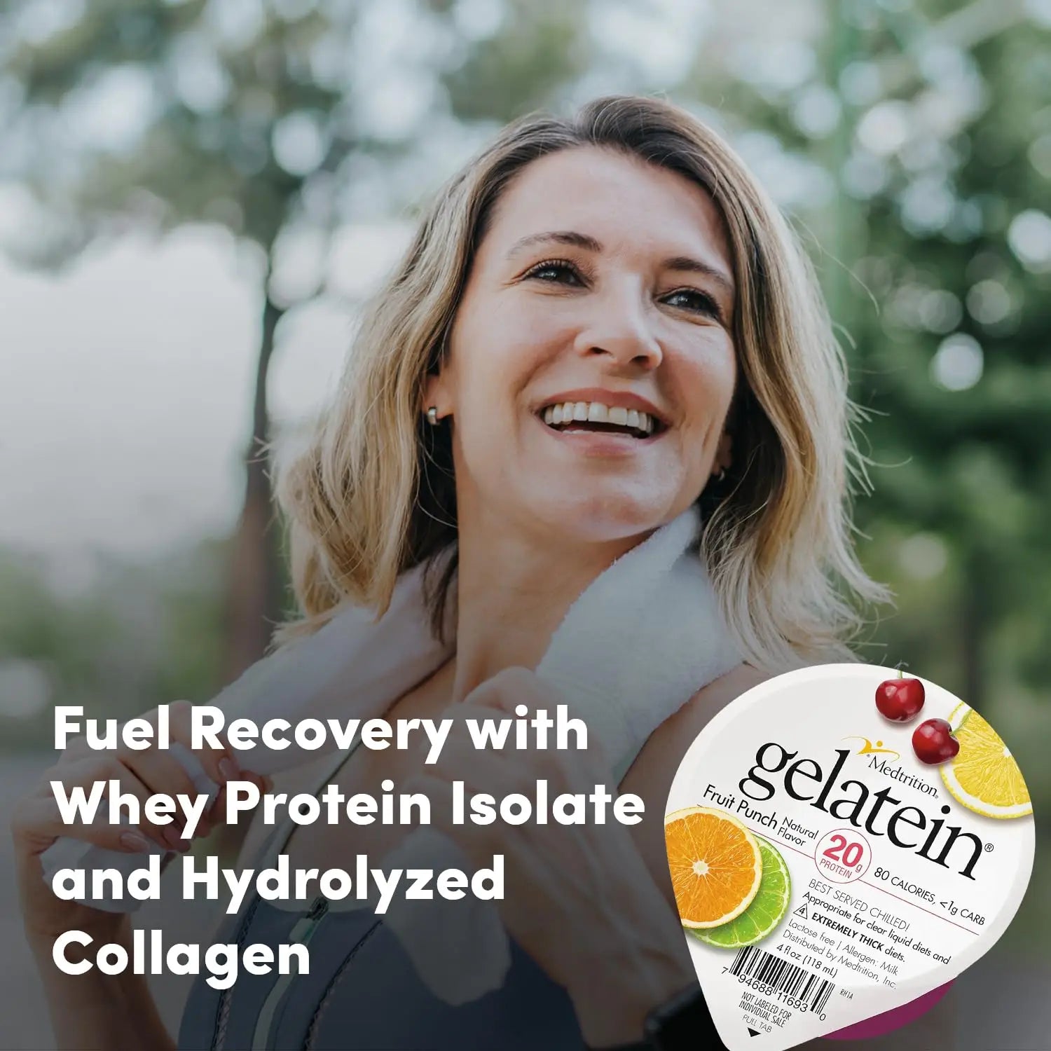 Gelatein Fruit Punch is a specialized medical food designed to provide superior protein delivery with two to three times the protein content found in standard nutritional shakes, puddings, and clear liquid supplements. With 20 grams of protein per serving and just 80 calories, it offers optimal nutrition without excess calories.
