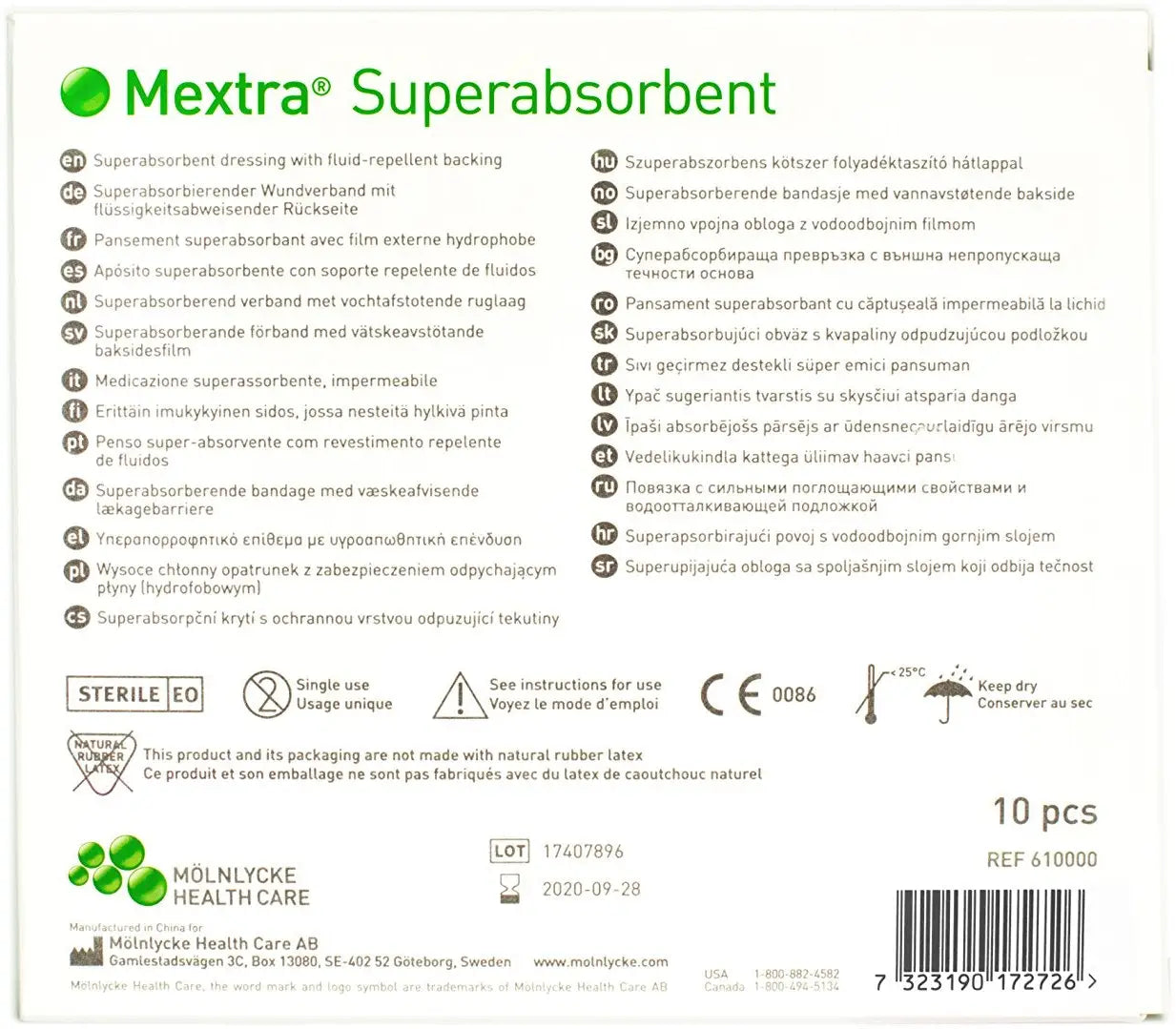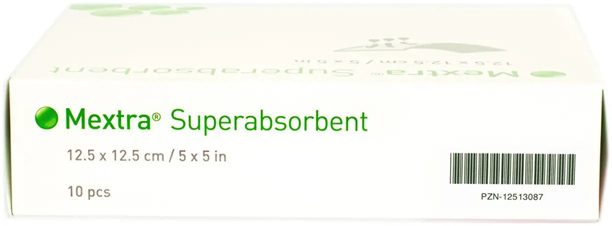 The Mextra Superabsorbent Dressing is designed for optimal management of highly draining wounds. Available in multiple sizes to accommodate various wound types and locations, this professional-grade dressing provides superior absorption and retention properties.