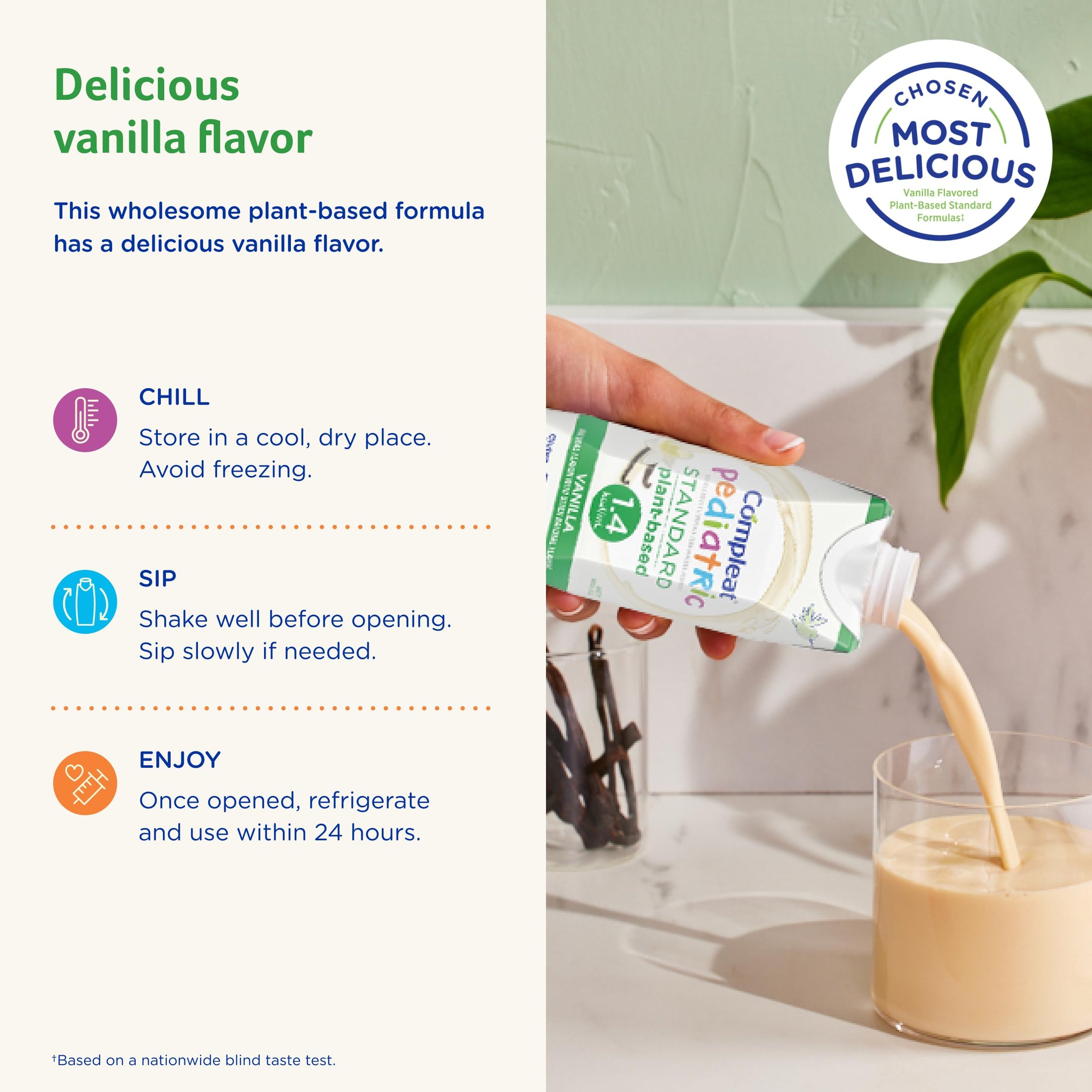 Suitable for both tube feeding and oral consumption, this formula features convenient reclosable caps for easy administration. The delicious vanilla and fruit medley flavor profile makes it more palatable for children who can consume it orally.
