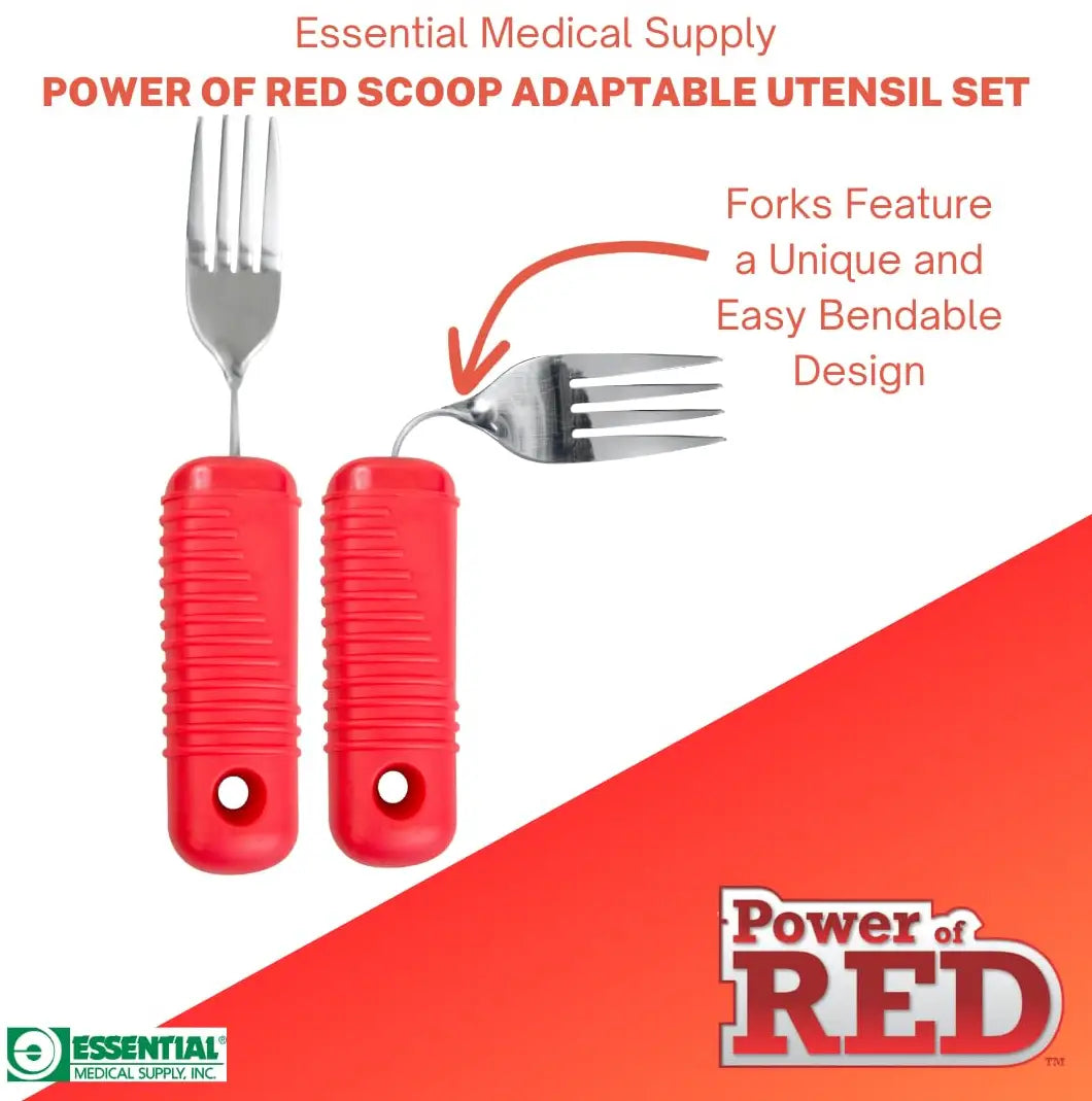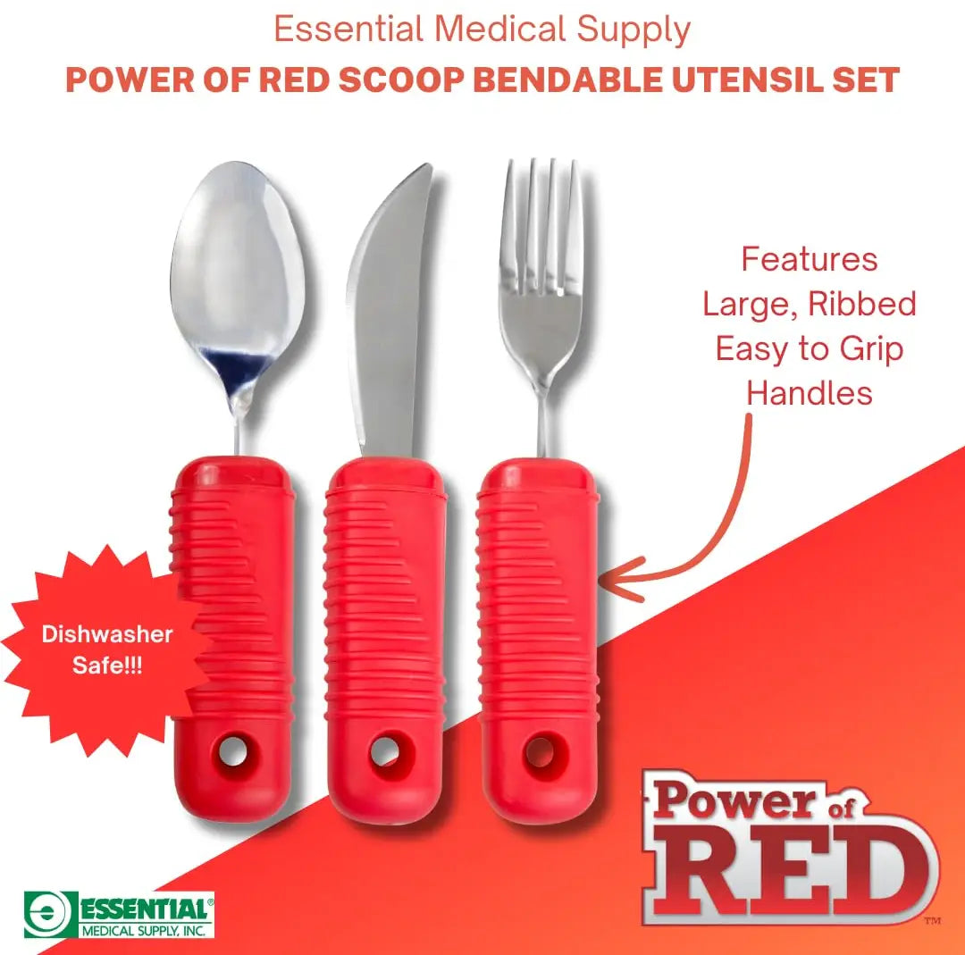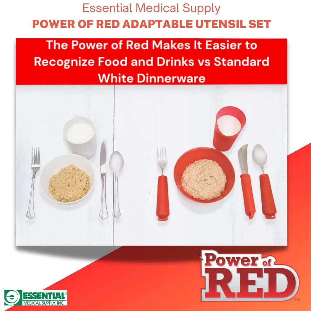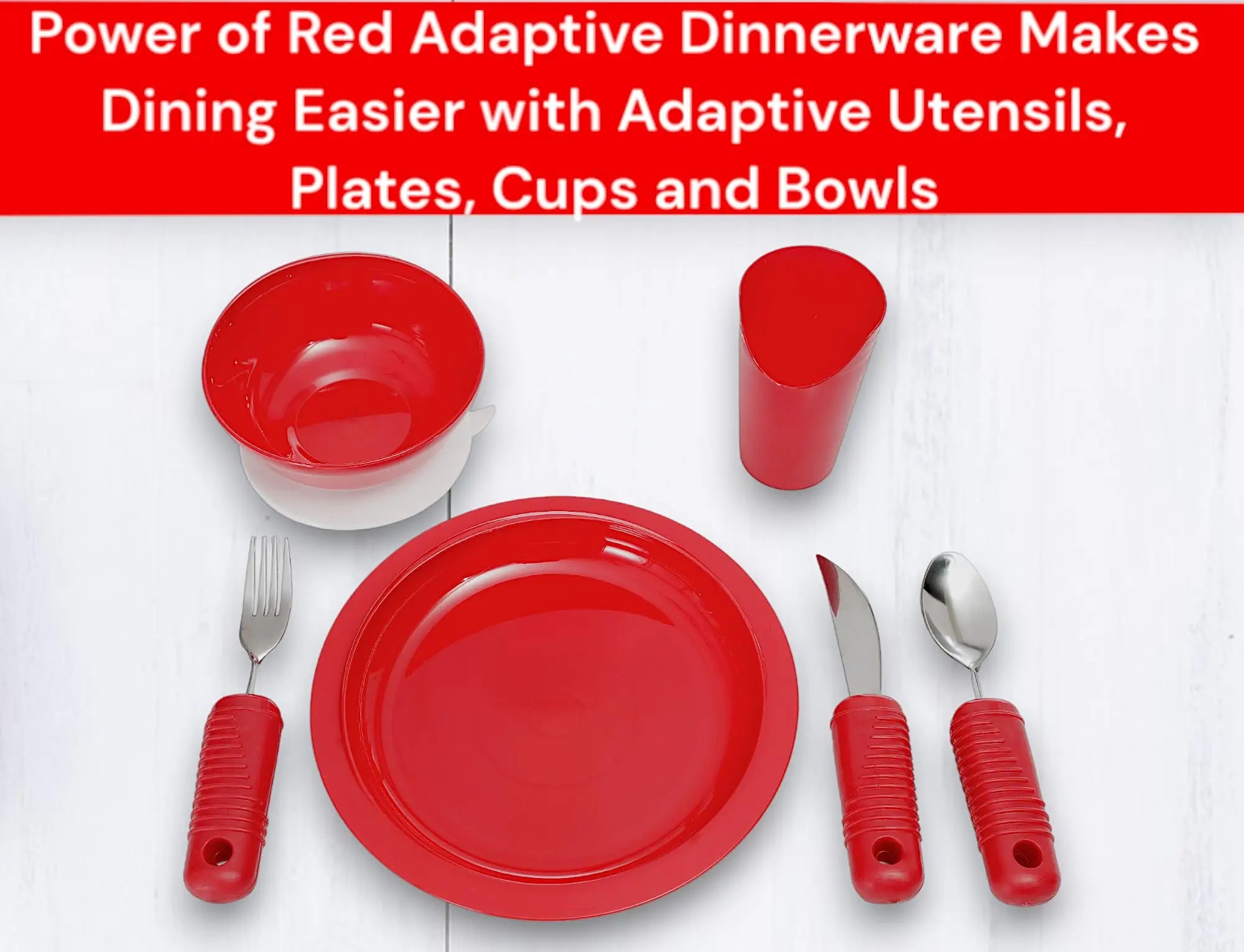Designed specifically for those with limited hand strength or dexterity, this adaptive utensil set makes mealtime more manageable and enjoyable. The vibrant red color has been shown to increase food recognition and eating engagement for individuals with Alzheimer's and dementia.