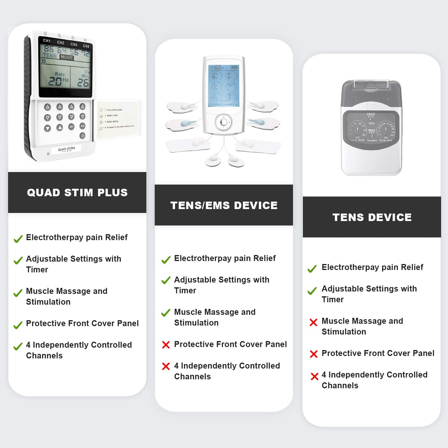 Featuring four independent output channels, this device allows you to target multiple muscle groups simultaneously. Each channel has individual intensity control, giving you precise management of your therapy sessions.