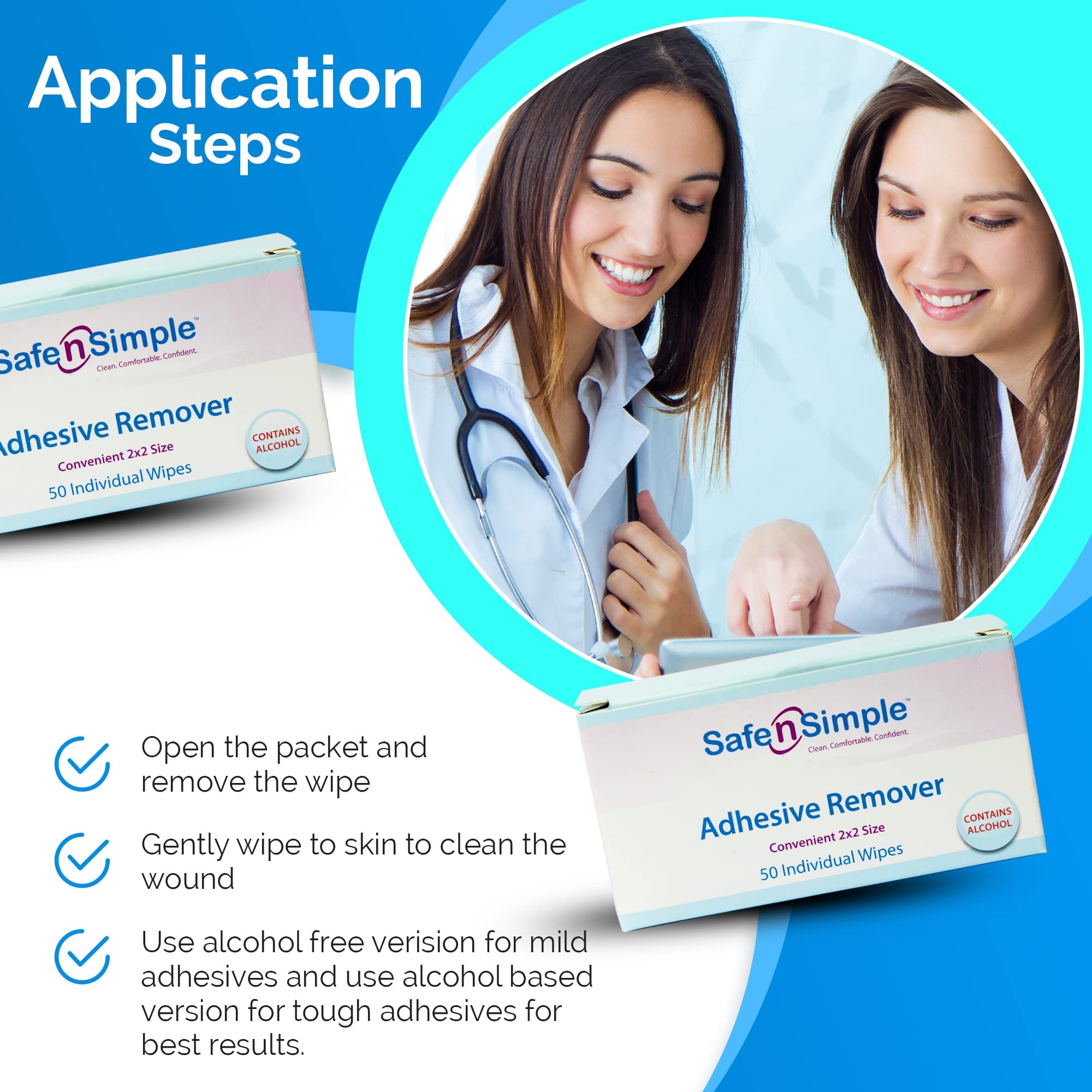 Simply wipe the adhesive remover over your skin and watch as mild residue comes right off. The large, easy-to-handle wipes make application simple and effective, providing a one-step solution for cleaning and removing sticky residue.