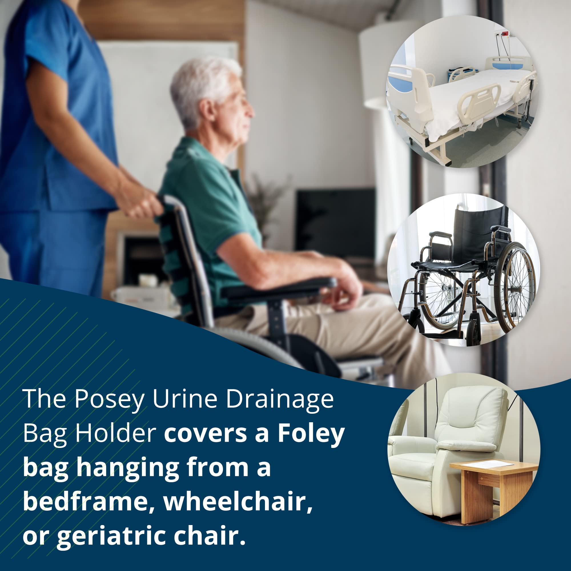 Perfect for use with Foley bags hanging from bedframes, wheelchairs, or geriatric chairs, this holder adapts to various healthcare settings and patient mobility needs.