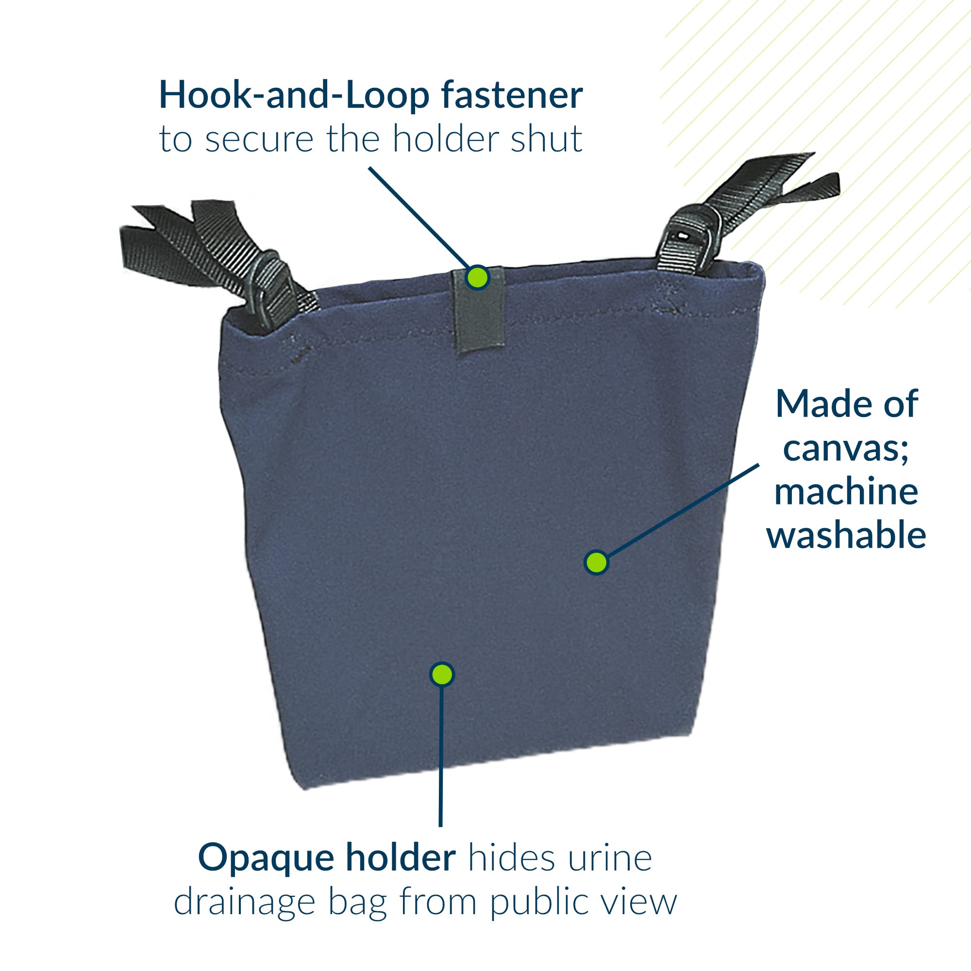 Designed specifically for healthcare environments, this opaque holder effectively conceals urine drainage bags from public view, promoting patient comfort and privacy during daily activities.
