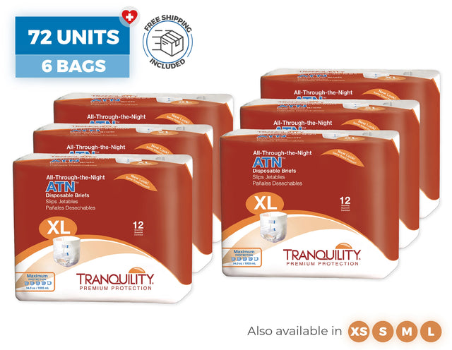 Experience uninterrupted rest and confidence with WellBefore Tranquility ATN All‑Through‑The‑Night Briefs, thoughtfully designed for maximum overnight protection. These unisex, latex‑free briefs feature a superabsorbent core and leak‑guard leg cuffs that lock in up to 34 oz of fluid—enough to handle multiple nightly voids—while the plastic‑backed design keeps bedding dry. The breathable, cloth‑like outer layer and peach‑infused core help maintain skin dryness, neutralize odors, and inhibit bacterial growth. A snug full‑hip fit, soft elastic leg elastics, and refastenable tapes make them comfortable and easy to adjust, even for side‑sleepers or during caregiving. With up to 6–8 hours of reliable leak protection, these briefs deliver peace of mind and restful nights, complete with convenient purchase and return options.