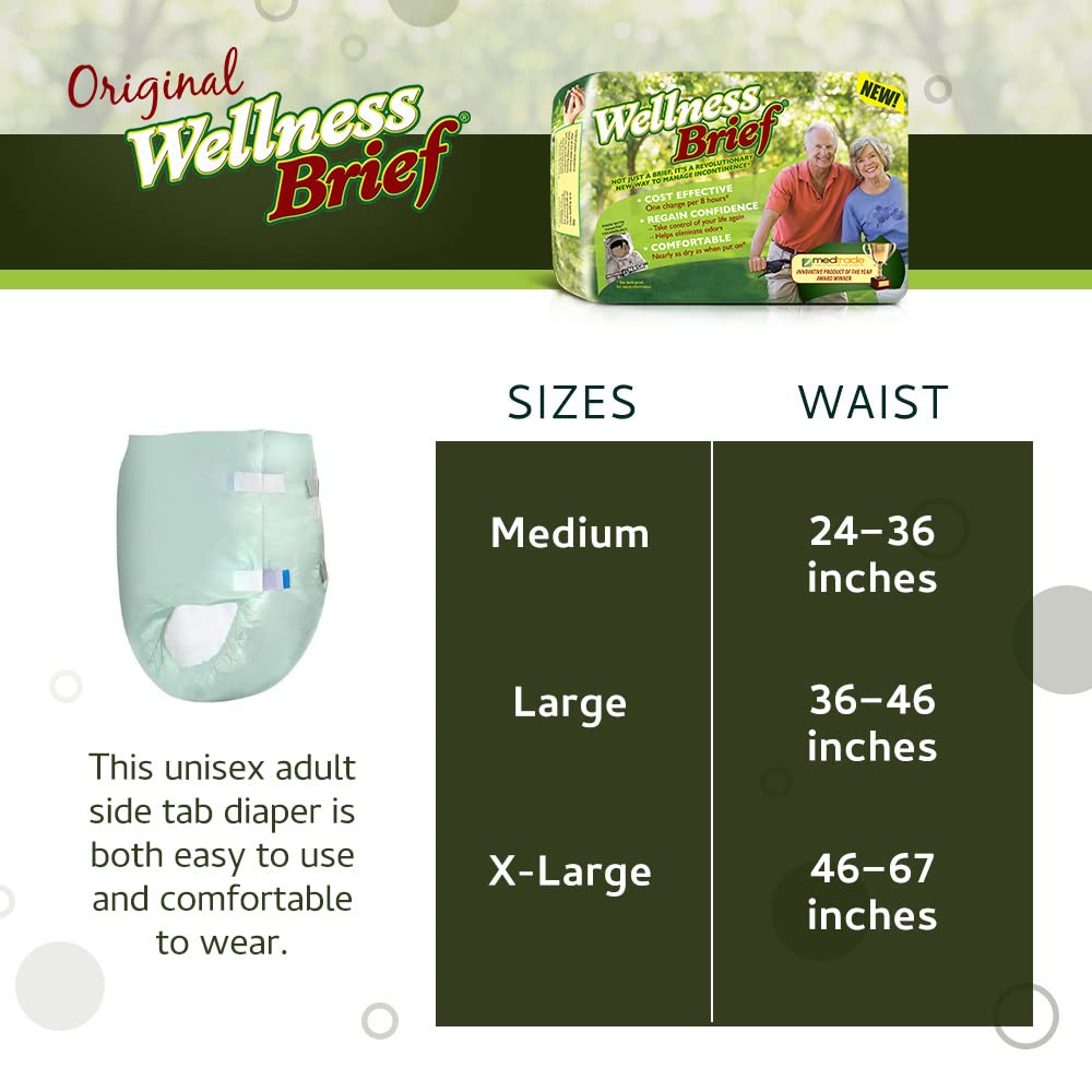 Featured on The Discovery Channel's "How Things Work," the Original Wellness Brief utilizes NASA-inspired technology to deliver superior absorbency and leakage control. These adult side tab diapers are engineered to keep skin, clothing, and linens continuously dry for up to 8 hours.