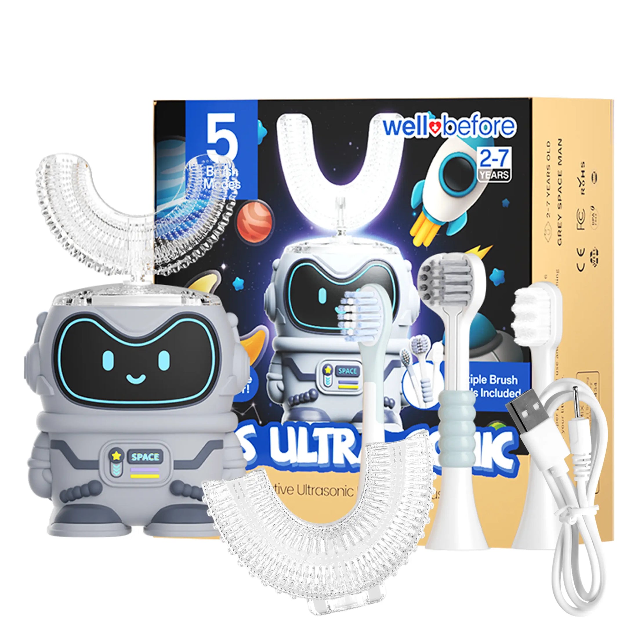 Make brushing fun, safe, and effective with the WellBefore Kids Electric Toothbrush – designed for children ages 2–7. Available in playful characters (Shark, Unicorn, and Spaceman), this toothbrush helps kids build healthy oral hygiene habits while keeping brushing exciting. With 5 interchangeable brush heads, 5 smart cleaning modes, and a built-in timer, it grows with your child’s needs and makes brushing easier for both kids and parents.