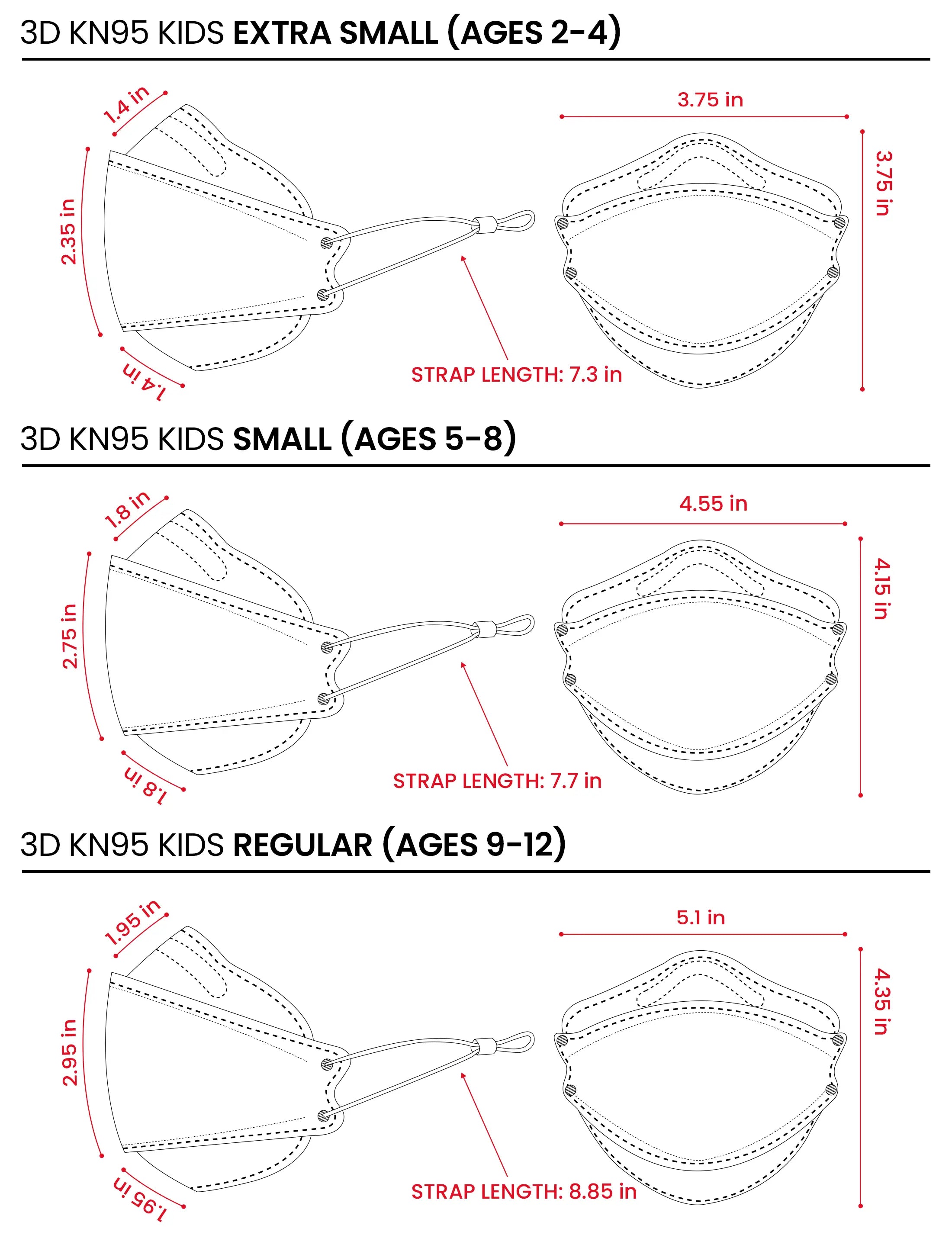 - KN95 3D Pro Stapled Head Straps – Black – Regular